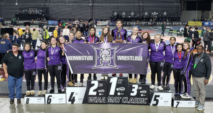HERMISTON, Ore.-The Hermiston High School Women’s Wrestling team finished second and saw its first individual state champion crowned at the Washington Interscholastic Activities Association (WIAA) State Championship on February 21.