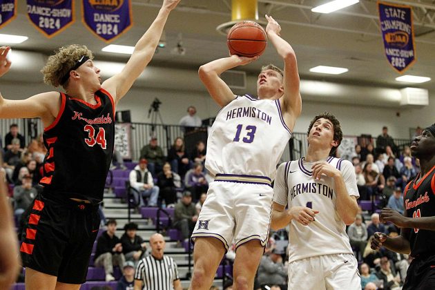 In the second game of the doubleheader, the Hermiston boys started strong, before suffering their third consecutive loss, 61-52. The loss to the Lions dropped the Bulldogs to 2-5 in league and 3-5 overall.