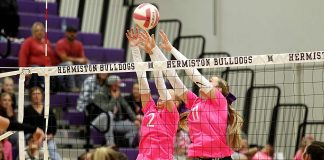 Hermiston Volleyball tops Wa-Hi on “Dig Pink” night