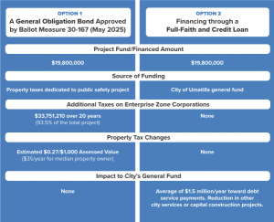 If Bond Measure 30-167 is rejected by voters, Umatilla plans to pursue a full-faith and credit loan to finance construction of the new police station.